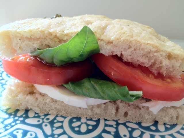 I attempted to recreate that amazing slice of heaven that I experienced in Rome. I followed this recipe that couldn't have been easier. Up until a few weeks ago, I feared using any recipe that involved yeast - let's just say I had a bad experience, but since my english muffins turned out so well, I decided to have another try. The result was quite amazing. The interior was light and fluffy and the outside was slightly crispy with a tasty aroma of rosemary and olive oil. With the bread still slightly warm, I placed handmade mozzarella from Caputo's here in Brooklyn (if you are ever in the area, you have to go), tomato and basil and enjoyed a caprese sandwich for a lovely Saturday afternoon lunch.